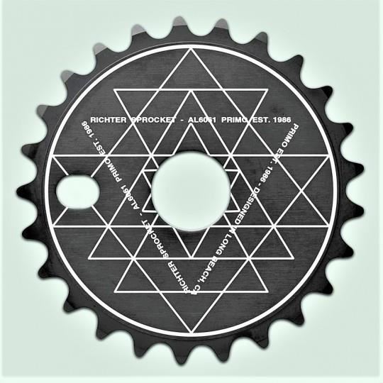 Precision CNC'd Alloy sprocket with a laser etched front pattern. Available with or without an integrated guard.