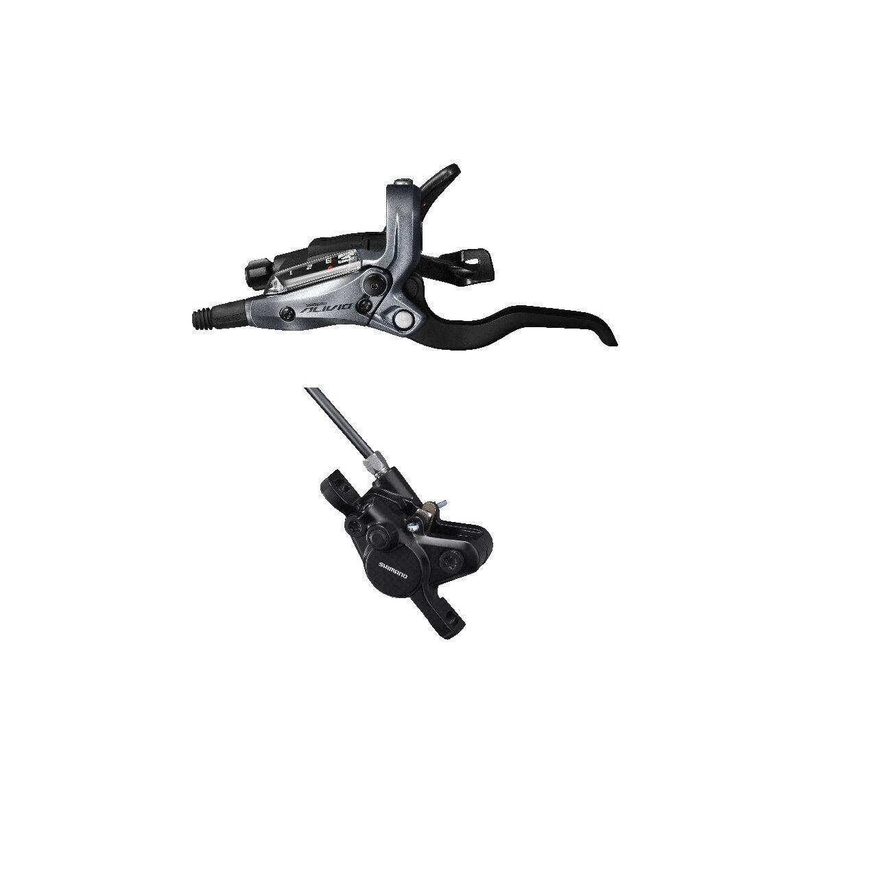 FRANA PE DISC SET ASAMBLAT SHIMANO ALIVIO ST-M4050(L) BR-MT400(F), FARA ADAPTOR, PLACUTE RESIN, FURTUN SM-BH59 1000MM NEGRU, CAMASA DE SCHIMBATOR SP41 600MM., INCL. OLIVA & INSERTIE CONECTARE, AMBALAT IND.