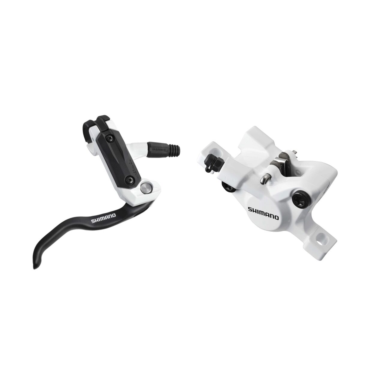 FRANA PE DISC SET ASAMBLAT SHIMANO BL-M505W(R) BR-M445W(R), FARA ADAPTOR, PLACUTE RESIN, FURTUN SM-BH59 1700MM ALB, INCL. OLIVA SI INSERTIE CONECTARE, ALB, VRAC