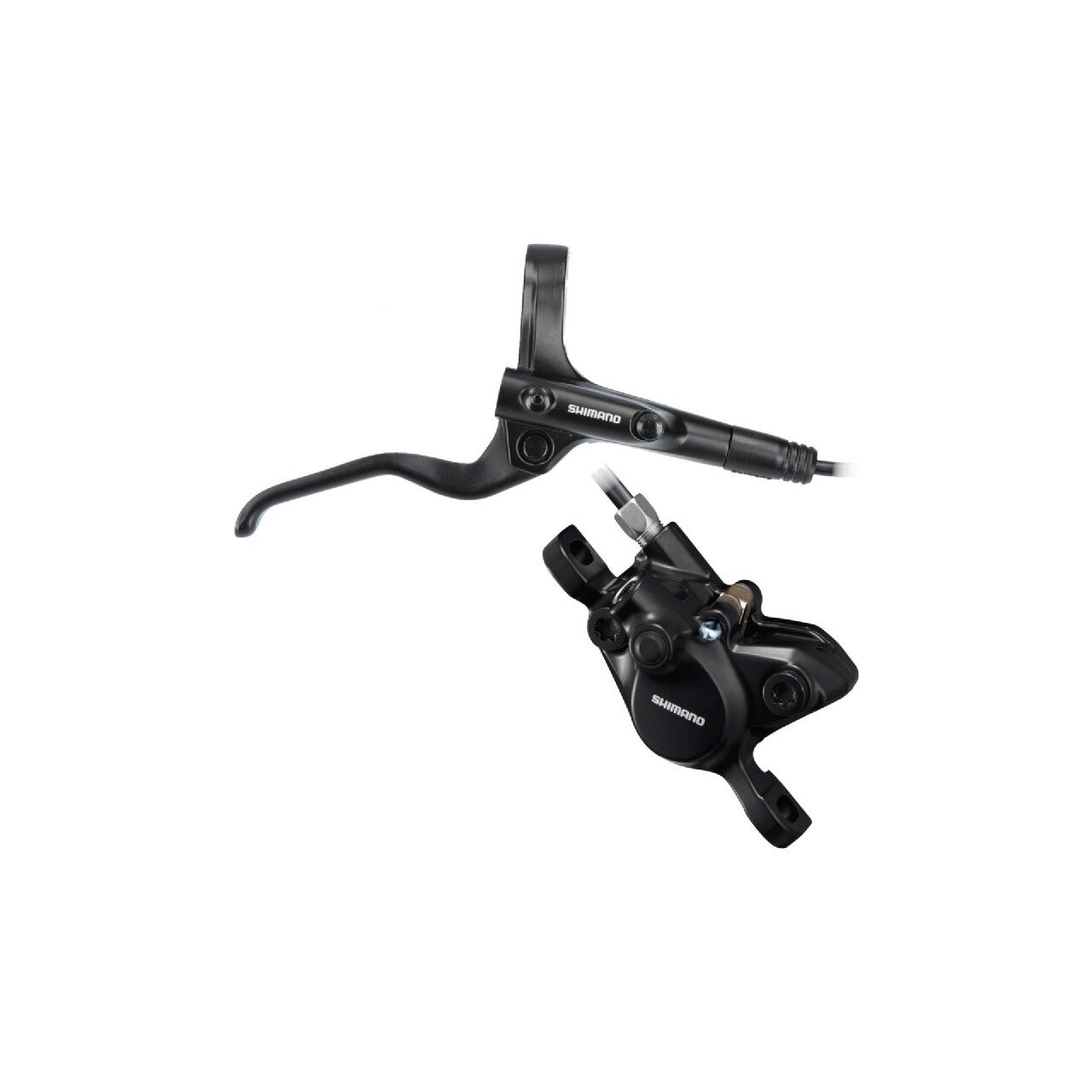 FRANA PE DISC SET ASAMBLAT SHIMANO BL-MT201(R), BR-MT200(R), LEVIER ALUMINIU, FARA ADAPTOR, PLACUTE RESIN, FURTUN SM-BH59-SS 1700MM NEGRU, INCL. OLIVA & INSERTIE CONECTARE, NEGRU, AMBALAT IND.