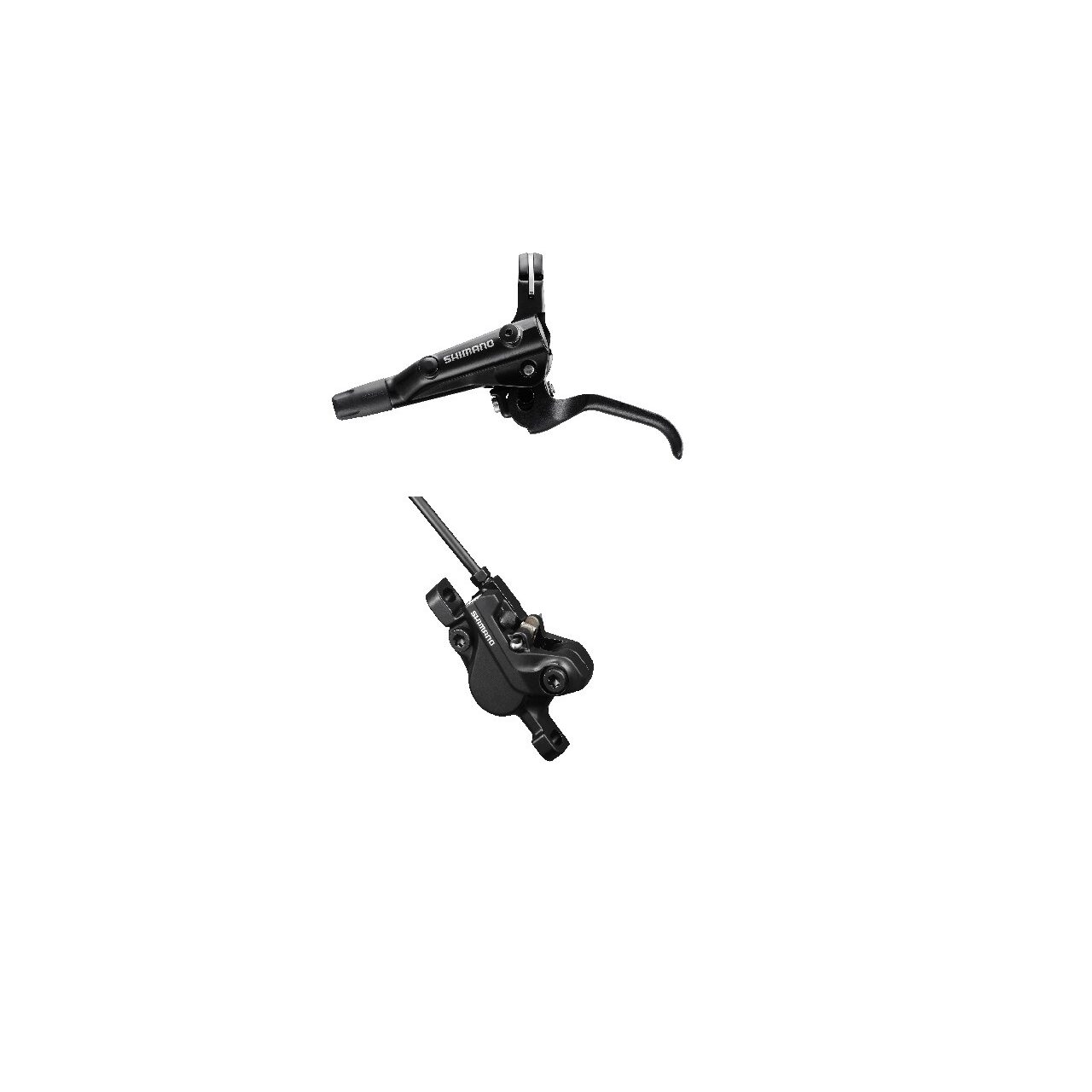 FRANA PE DISC SET ASAMBLAT SHIMANO DEORE BL-MT500(L) BR-MT500(F), PT. POST MOUNT, PLACUTE RESIN (FARA ARIPIOARE DE RACIRE), FURTUN SM-BH59-SS 1000MM NEGRU, INCL. OLIVA SI INSERTIE CONECTARE, NEGRU, AMBALAT IND.