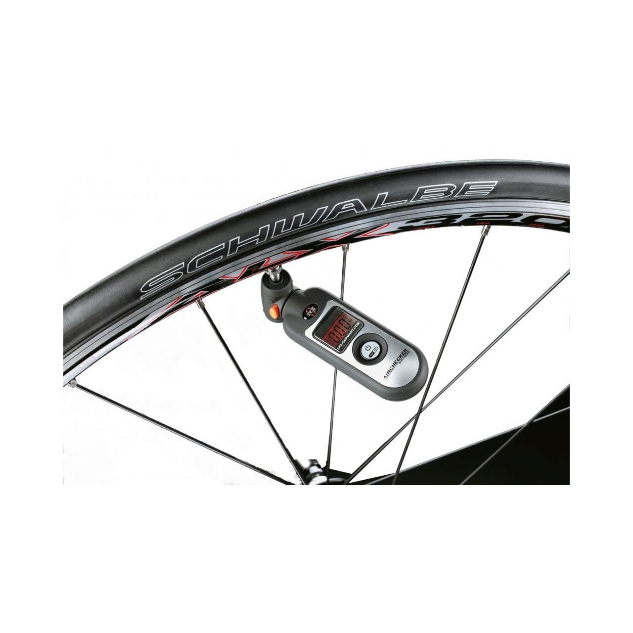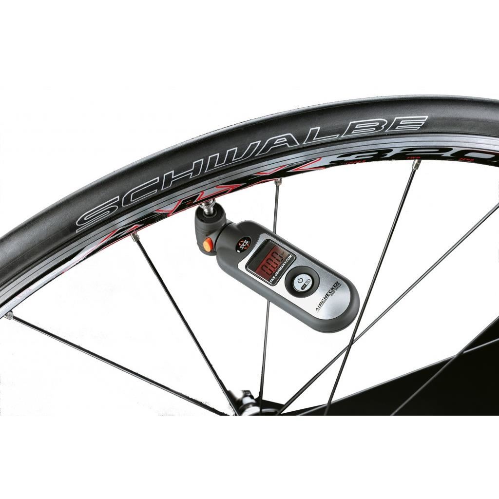 SKS a proiectat si dezvoltat noul manometru digital Airchecker. Datorita capului cu ambele valve vei putea masura usor presiunea caucicurilor indiferent de tipul valvei. Manometrul permite schimbarea unitatii de masura (PSI sau bar). Airchecker dispune si de un buton de eliberare a aerului.