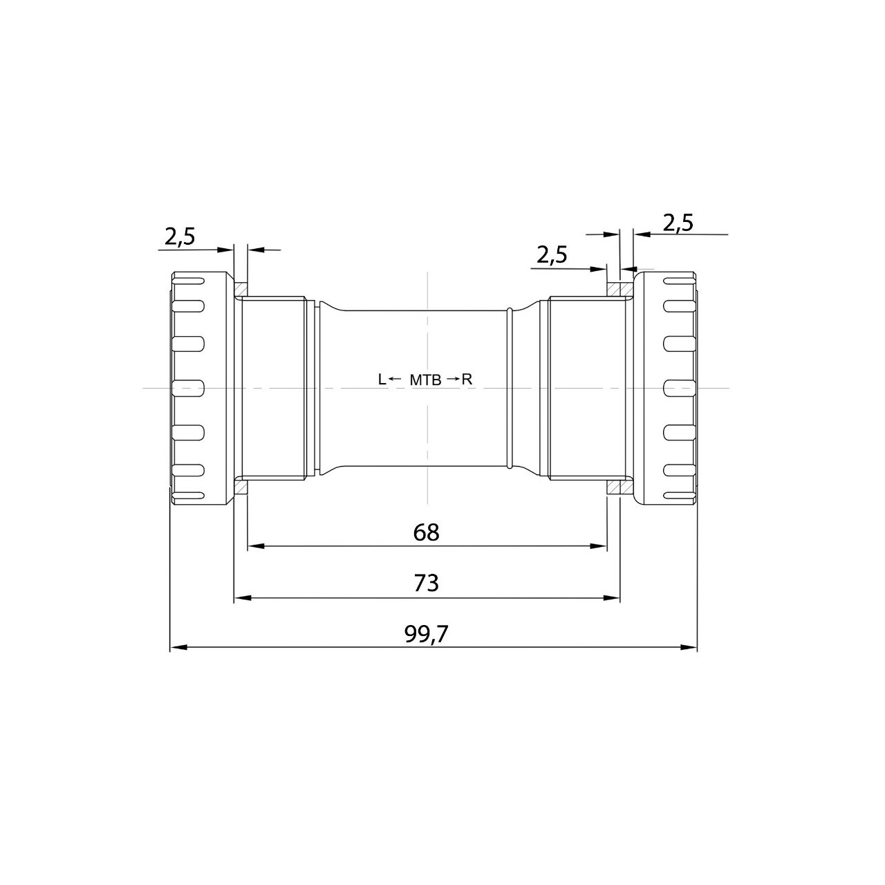 Monobloc Pedalier MTB -68-73 mm