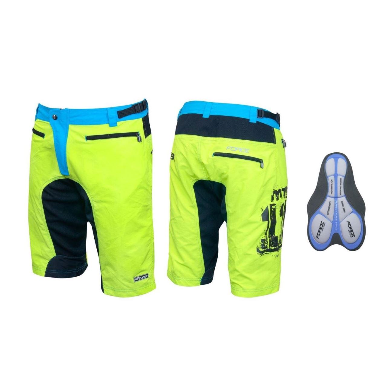 Pantaloni scurti Force MTB-11 cu interior detasabil galben fluo L