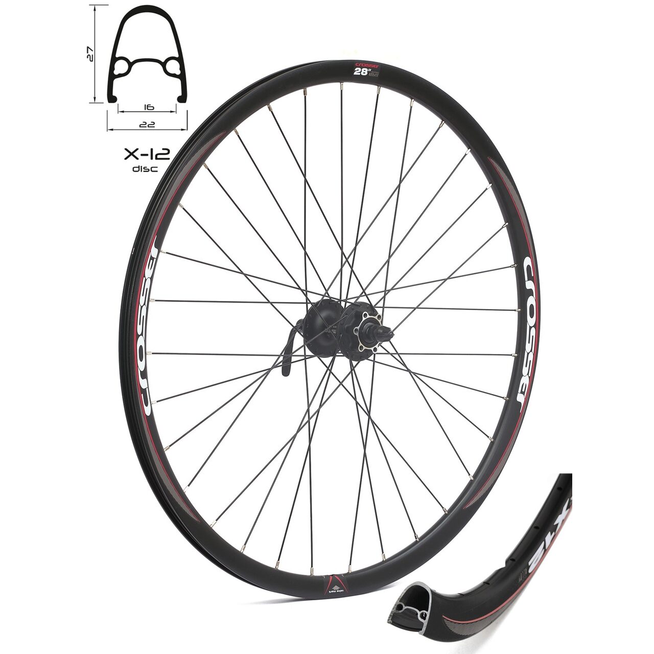 Roata CROSSER X12 32H 28 Fata QR Disc butuc SHIMANO BM475 Negru
