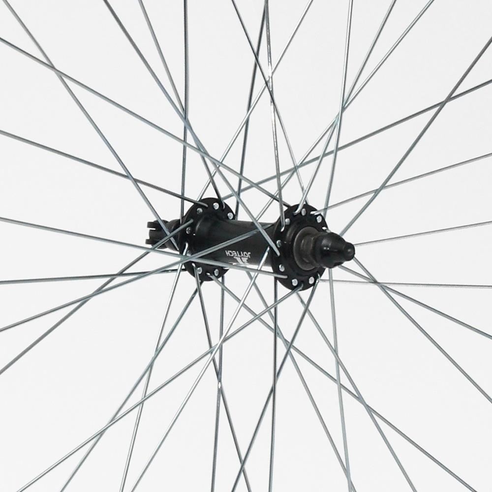 Roata fata 28" cu 36 de spite, butuc JoyTech si prindere quick release.