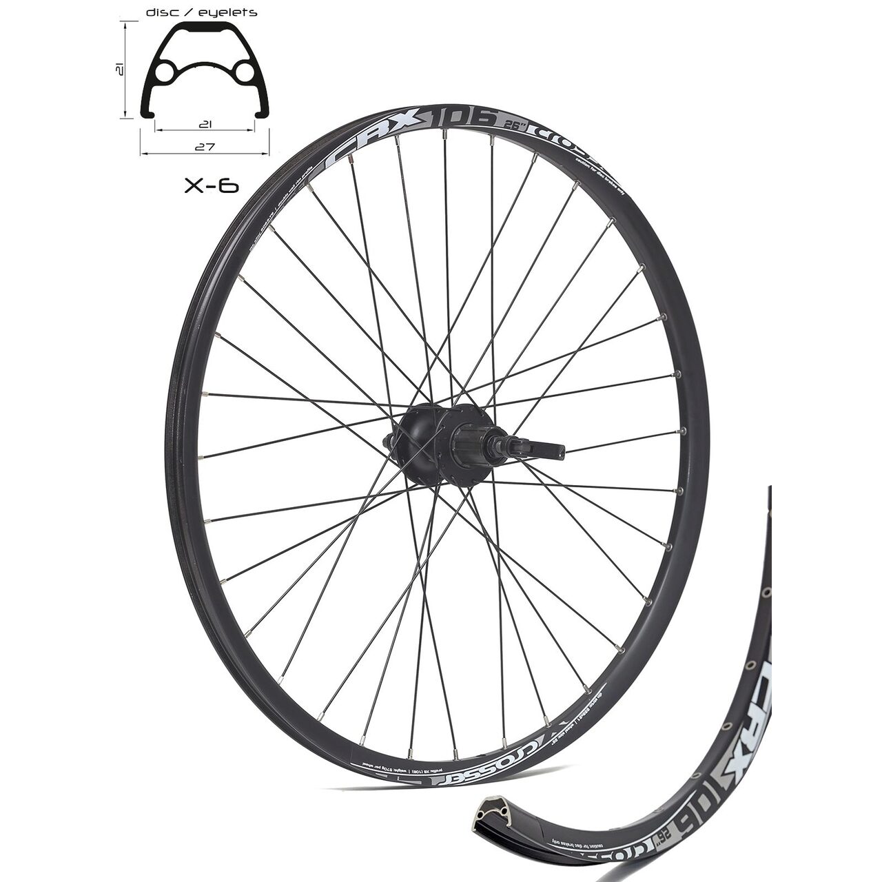 Roata CROSSER X6 32H 26" Spate QR Disc Caseta capsata butuc SHIMANO HM475 Negru