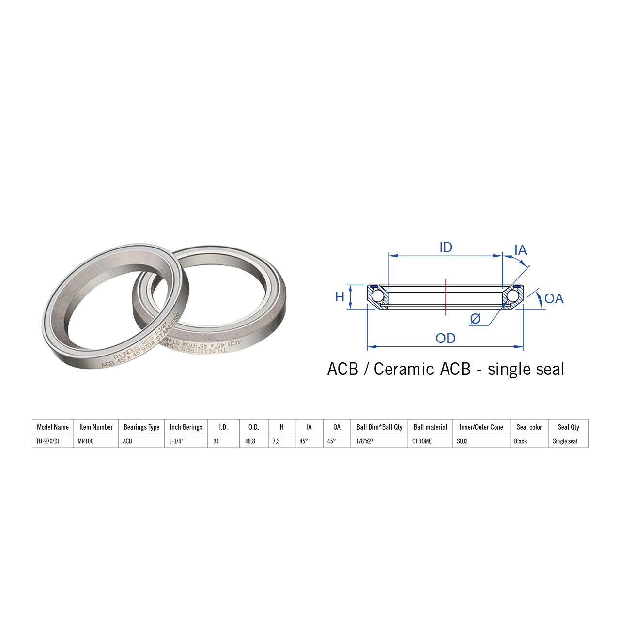 Rulment cuvete FSA TH-970/DJ ACB 45x45 1"1/4 singleS MR100